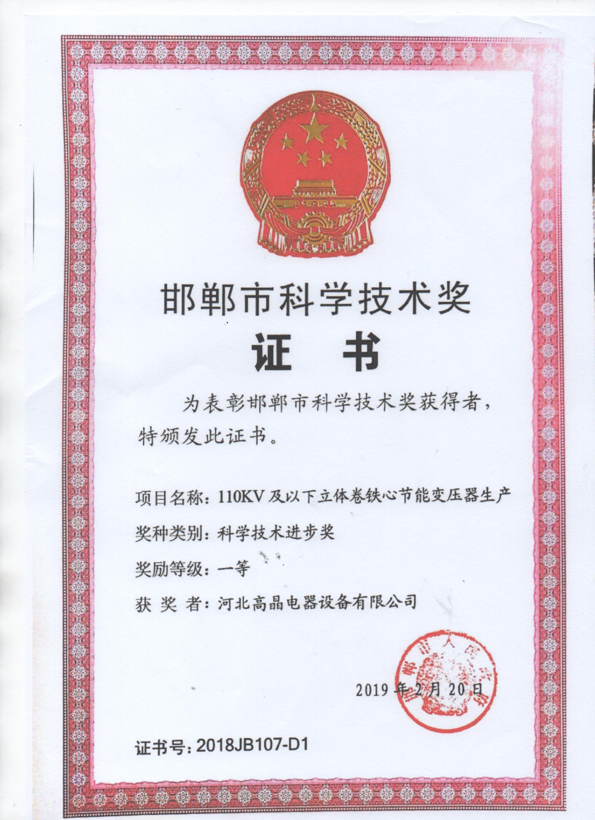 邯鄲市科學(xué)技術(shù)獎(jiǎng)