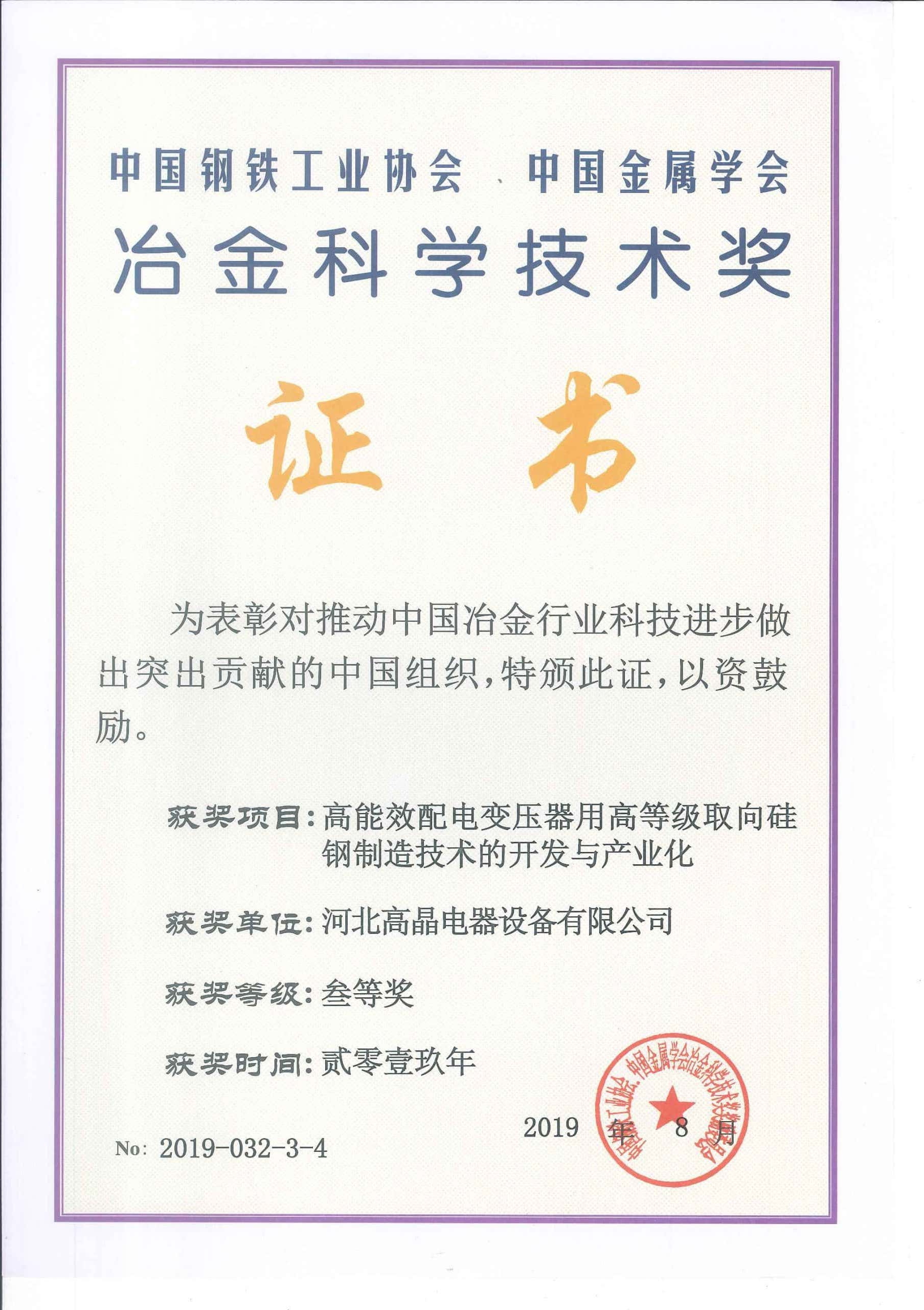 冶金科學(xué)技術(shù)獎(jiǎng)